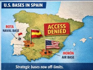 Visual Context: Spain operates two key U.S.-joint bases, Rota and Morón, strategically positioned for Mediterranean and Middle Eastern operations. Analysts point out that limiting access significantly reduces the operational range of U.S. forces, making Spain’s decision a rare show of European strategic independence.
