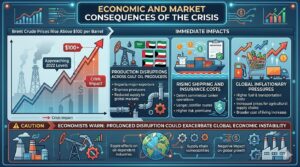 The crisis has already sent Brent crude prices above $100 per barrel, approaching levels not seen since 2022. Immediate impacts include: